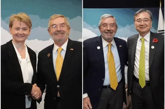 Mientras que la reunión bilateral con la secretaria de Estadopara Asuntos Exteriores, de la Mancomunidad y de Desarrollo del Reino Unido, Yvette Cooper, conversaron sobre el fortalecimiento de los lazos comerciales y de inversión entre ambos países, en el marco del Plan México.