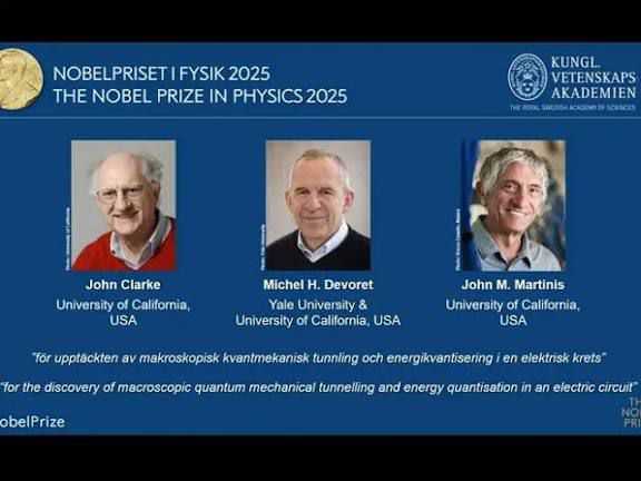 El Premio Nobel de Física 2025 es para el británico John Clarke, el francés Michel H. Devoret y el estadounidense John M. Martinis “por el descubrimiento del efecto túnel cuántico macroscópico y la cuantización de la energía en un circuito eléctrico”, informó la Real Academia de las Ciencias Sueca